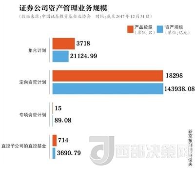基金業(yè)協(xié)會(huì)數(shù)據(jù)顯示,截至2017年末,證券公司資產(chǎn)管理業(yè)務(wù)規(guī)模16.88萬億元,相比2017年一季度末18.77萬億元(最高值)減少1.89萬億元。其中定向資管計(jì)劃產(chǎn)品規(guī)模為14.39萬億元,相比2017年一季度末16.06萬億元下滑1.67萬億元。也就是說在券商資管規(guī)模縮減的1.89萬億中,8成左右是通道業(yè)務(wù)。