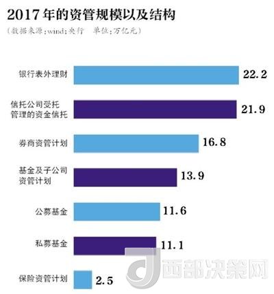 央行數(shù)據(jù)顯示,近年來,我國金融機(jī)構(gòu)資管業(yè)務(wù)規(guī)模不斷攀升,截至2017年末,不考慮交叉持有因素,總規(guī)模已達(dá)百萬億元。其中,銀行表外理財(cái)產(chǎn)品資金余額為22.2萬億元,信托公司受托管理的資金信托余額為21.9萬億元。同時(shí),互聯(lián)網(wǎng)企業(yè)、各類投資顧問公司等非金融機(jī)構(gòu)開展資管業(yè)務(wù)也十分活躍。