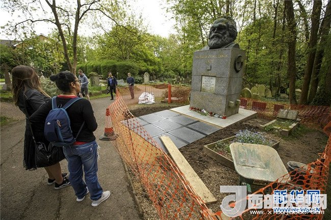 歷史長河奔流不息,真理之光穿越時空。1818年5月5日,德國小城特里爾,一代偉人馬克思誕生。200年后,世界東方。高擎馬克思主義的精神火炬,在習近平新時代中國特色社會主義思想指引下,中國共產黨正領導億萬人民書寫人類發(fā)展史上新的奇跡。這是2018年5月3日,在英國倫敦北部海格特公墓,人們來到正在進行維修的馬克思墓前參觀。新華社發(fā)(蒂姆·愛爾蘭攝)