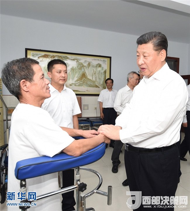 2016年7月28日,中共中央總書記、國家主席、中央軍委主席習近平到河北唐山市調研考察。這是習近平在唐山市截癱療養(yǎng)院康復室了解截癱傷員的康復治療情況。 新華社記者 謝環(huán)馳 攝