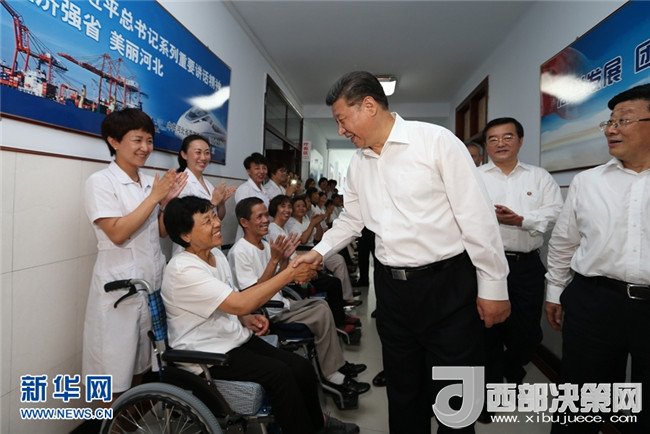 2016年7月28日,中共中央總書記、國家主席、中央軍委主席習近平到河北唐山市調研考察。這是習近平在唐山市截癱療養(yǎng)院看望慰問截癱傷員。 新華社記者 蘭紅光 攝