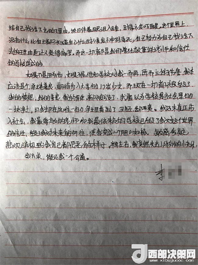 在李某奕覺(jué)得,自己并未做錯(cuò)什么,學(xué)校寧要讓她轉(zhuǎn)校也不調(diào)換一名老師,這對(duì)她來(lái)講不公平。從此她開始焦慮、煩躁、夜不能寐,一直靠安眠藥睡眠,以至后來(lái)不能正常上課。她一直想要一個(gè)公道,直至她跳樓自殺也未能如愿。