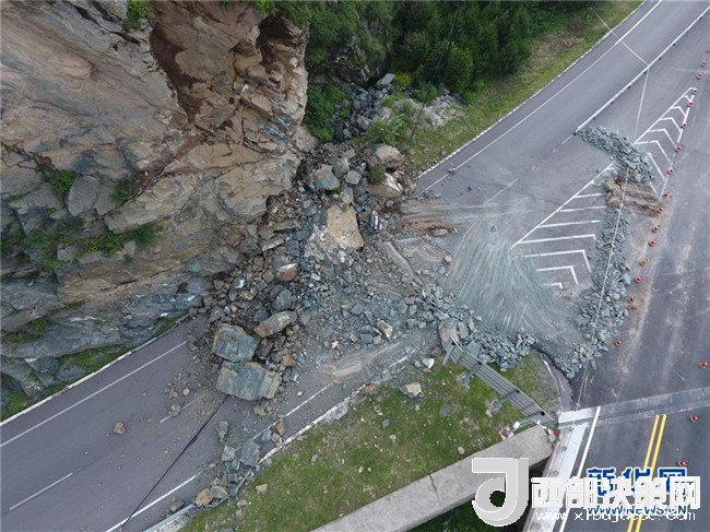 這是五臺(tái)山景區(qū)大甘河橋一側(cè)的山體崩塌現(xiàn)場(7月21日攝)。受降雨影響,山西五臺(tái)山景區(qū)于7月19日和20日發(fā)生兩起山體崩塌地質(zhì)災(zāi)害,沒有造成人員傷亡和車輛損失。新華社發(fā)(楊晨光攝)