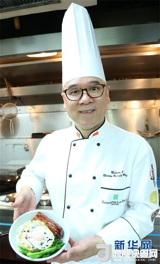 在香港六國(guó)酒店,香港中廚師協(xié)會(huì)會(huì)長(zhǎng)馬榮德向記者展示他剛剛制作的“黯然銷魂飯”(6月14日攝)。新華社記者 萬(wàn)后德 攝