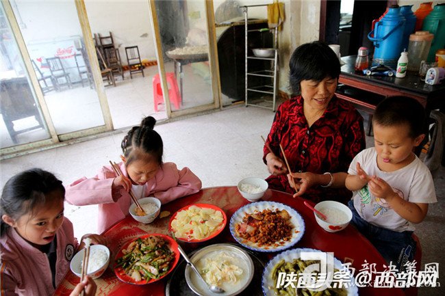 陳遠太的老伴去山上干活去了,中午回不了家吃飯,陳遠太便招呼孫女、孫子吃中午飯,小家伙們?nèi)偷贸院茫荒茏屗麄凁I著。孩子的父母都不在家,做奶奶的更心疼孩子。