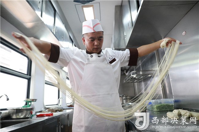 西部決策網(wǎng)——西部大開(kāi)發(fā)訊 (記者帥華鋒 杜杰 通訊員 強(qiáng)科 宋佳龍/攝影) “終于在火車(chē)上吃上了期盼已久的正宗的蘭州牛肉面,給鐵路點(diǎn)個(gè)贊。”8月28日,在蘭州鼎鼎有名的“舌尖尖牛肉面”正式入駐蘭州開(kāi)往敦煌的Y667/8次列車(chē)。記者看到,在拉面大師的嫻熟“表演”下,一碗碗撒發(fā)著濃郁香味的牛肉面被端上了列車(chē)餐桌。至此,蘭州牛肉面坐火車(chē)開(kāi)啟了舌尖上的“絲路之旅”。