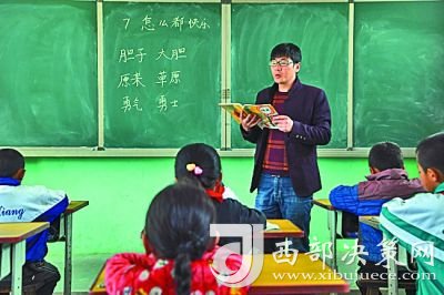 在甘肅省永靖縣小嶺鄉(xiāng)土門村土門小學,校長鮮虎給一年級學生上語文課。新華社記者 范培珅攝