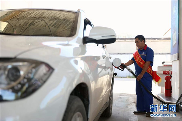 9月3日,河北省任縣一家加油站工作人員給車輛加油。 當(dāng)日,國家發(fā)展改革委發(fā)布消息,按照現(xiàn)行成品油價(jià)格形成機(jī)制,自2018年9月3日24時(shí)起,國內(nèi)汽油、柴油價(jià)格每噸分別上調(diào)180元和170元。 新華社發(fā)(宋杰 攝)