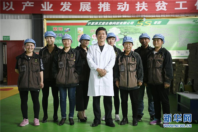 潘文賢(前排中)在寧夏固原市隆德縣隆德人造花工藝有限公司與企業(yè)員工合影(8月29日攝)。來(lái)自福建南安市的潘文賢2011年在隆德縣創(chuàng)辦隆德人造花工藝有限公司,成為隆德縣第一家集研發(fā)、生產(chǎn)和銷售于一體的勞動(dòng)密集型出口創(chuàng)匯企業(yè),產(chǎn)品遠(yuǎn)銷歐美及東南亞等國(guó)家和地區(qū)。截至2017年底,已成功打造隆德縣前莊村、紅崖社區(qū)等5個(gè)扶貧車間,幫助150人穩(wěn)定就業(yè)、218戶外加工戶靈活增收,帶動(dòng)300多個(gè)建檔立卡戶增收脫貧。新華社記者王鵬攝