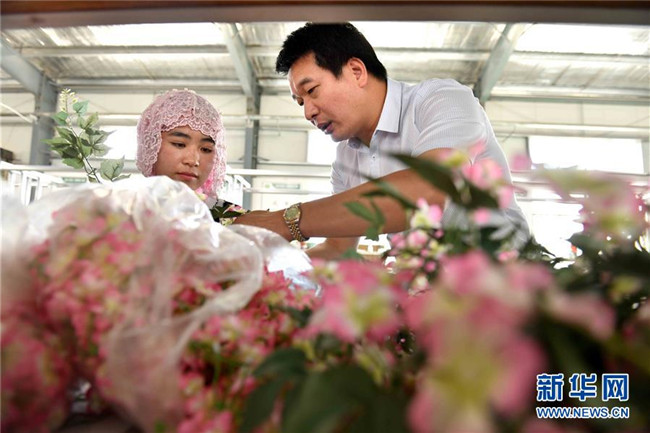 潘文賢(右)在寧夏固原市隆德縣隆德人造花工藝有限公司向員工介紹人造花制作技術(shù)(8月29日攝)。來(lái)自福建南安市的潘文賢2011年在隆德縣創(chuàng)辦隆德人造花工藝有限公司,成為隆德縣第一家集研發(fā)、生產(chǎn)和銷售于一體的勞動(dòng)密集型出口創(chuàng)匯企業(yè),產(chǎn)品遠(yuǎn)銷歐美及東南亞等國(guó)家和地區(qū)。截至2017年底,已成功打造隆德縣前莊村、紅崖社區(qū)等5個(gè)扶貧車間,幫助150人穩(wěn)定就業(yè)、218戶外加工戶靈活增收,帶動(dòng)300多個(gè)建檔立卡戶增收脫貧。 新華社記者郭緒雷攝