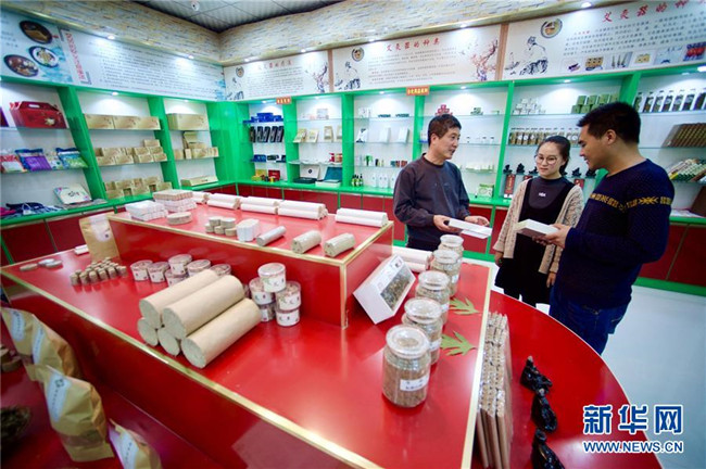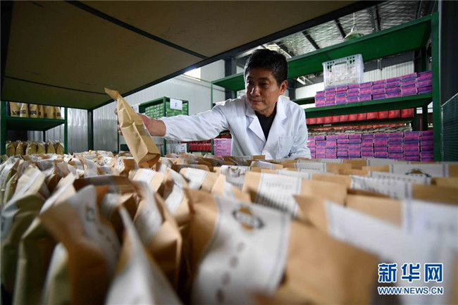 林玉清在寧夏固原市西吉縣寧夏澤艾堂生物科技有限公司查看艾草產(chǎn)品(8月30日攝)。來(lái)自福建莆田的林玉清2017年3月在西吉縣成立寧夏澤艾堂生物科技有限公司,依托西吉縣優(yōu)質(zhì)的艾草種植條件,采用“公司+合作社+農(nóng)戶”的訂單農(nóng)業(yè)合作模式,與吉強(qiáng)、新?tīng)I(yíng)等鄉(xiāng)鎮(zhèn)種植專業(yè)合作社合作建成艾草種植基地11個(gè)、推廣種植艾草6000畝,為當(dāng)?shù)厝罕娒撠氈赂讳伨托侣纷?。新華社記者郭緒雷攝