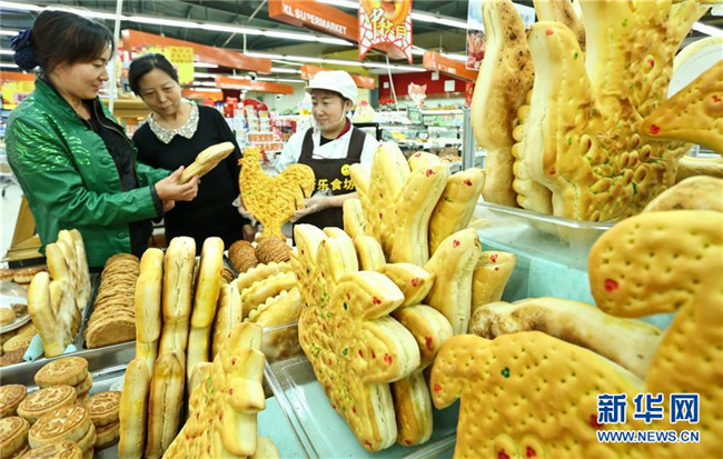 中秋節(jié)前制作“土月餅”是甘肅張掖的傳統(tǒng)習俗,至今已有千年歷史。“土月餅”用醒發(fā)后的面團做成各種造型,再經(jīng)烤制而成,物美價廉,深受市民歡迎。新華社發(fā)(王將 攝)