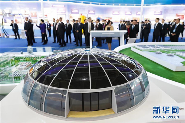 9月19日,觀眾在參觀展覽上展出的光伏住宅小屋模型。9月19日,寧夏回族自治區(qū)成立60周年大型成就展在銀川國(guó)際會(huì)展中心開(kāi)幕。記者沈伯韓攝