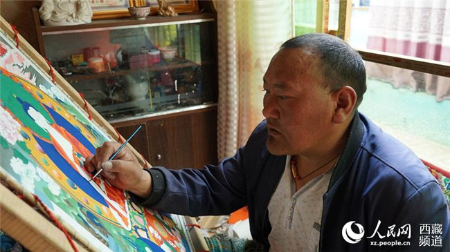 在薩迦縣城寶鋼中路上,民族手工業(yè)合作社店鋪里,45歲的邊巴正在小心擺弄著墻上的唐卡。邊巴說:“咱們薩迦民族手工業(yè)歷史悠久,比如薩迦唐卡和銀器都有千年歷史,泥塑面具也有900多年歷史,希望通過合作社形式讓手工業(yè)能規(guī)模化經營,解決一些貧困戶就業(yè)。”(記者鄧建勝 瓊達卓嘎 )