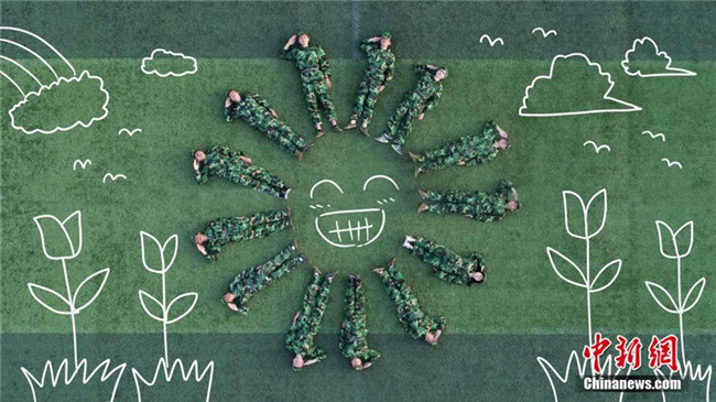 一提到軍訓(xùn),除了走方陣,站軍姿,你還能想到什么?近日,在福建師范大學(xué)協(xié)和學(xué)院2018級(jí)新生軍訓(xùn)場(chǎng)上,128位軍訓(xùn)新生以“閃閃紅星”“牢記八一”“嘹亮軍歌”等為題材拍攝出的一組航拍造型,并對(duì)照片進(jìn)行手繪加工,記錄下了新生們不一樣的軍訓(xùn)瞬間。陳可涵 攝 劉少航 繪