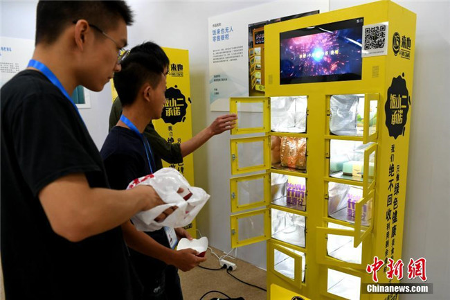 10月13日,第四屆中國(guó)“互聯(lián)網(wǎng)+”大學(xué)生創(chuàng)新創(chuàng)業(yè)大賽總決賽在廈門(mén)大學(xué)舉行。無(wú)人機(jī)、自助售飯機(jī)、人偶互動(dòng)、全息3D智能視頻、機(jī)器人輪椅、3D打印假肢手臂等大學(xué)生研發(fā)設(shè)計(jì)的產(chǎn)品亮相會(huì)場(chǎng),以“90后”為主的創(chuàng)新創(chuàng)業(yè)生力軍已全面發(fā)力,釋放出“青年+創(chuàng)新創(chuàng)業(yè)”的無(wú)窮力量。圖為無(wú)人售飯機(jī)展示。中新社記者 王東明 攝