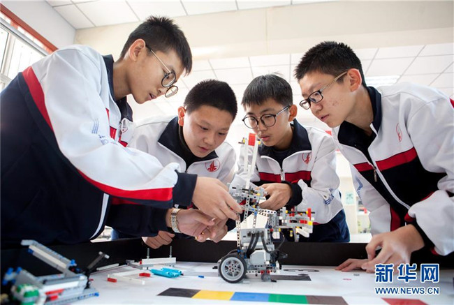 近年來,河北武邑中學(xué)開設(shè)機(jī)器人、航模、科技實(shí)驗(yàn)等趣味科普課程,激發(fā)學(xué)生的創(chuàng)新創(chuàng)造意識(shí)和科學(xué)探索精神,讓學(xué)生近距離感受科技魅力。 新華社記者 朱旭東 攝
