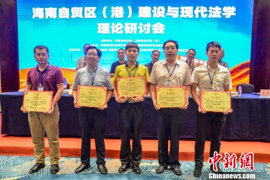 圖為海南省法學會向海南自貿(mào)區(qū)(港)法治建設(shè)優(yōu)秀論文撰寫者頒獎?!『閳赠i 攝