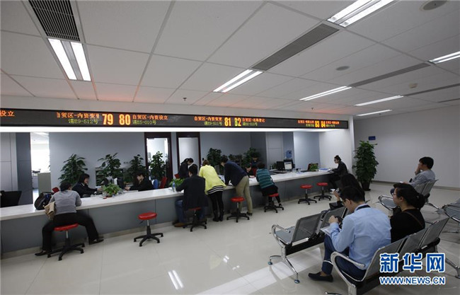 這是設在上海張江高科技園區(qū)管理委員會大樓內的中國(上海)自由貿易試驗區(qū)張江行政服務中心辦事大廳一角(2015年3月31日攝)。新華社記者方喆攝