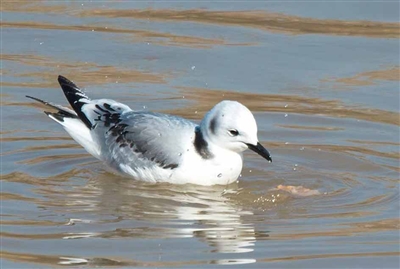 這是一只身體雪白,但有幾點(diǎn)黑色(嘴黑、腿黑、尾也黑)點(diǎn)綴的美麗精靈,在寧湖濕地公園,它時(shí)而悠閑地在水面游弋,時(shí)而俯沖進(jìn)水面捕魚。經(jīng)西寧市觀鳥協(xié)會(huì)負(fù)責(zé)人王艦艇判斷,那是一只三趾鷗,是一種海洋鳥,它現(xiàn)身西寧,是極為罕見的。