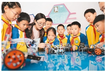 河北省承德市營子區(qū)濱河路小學(xué)將機(jī)器人編程課引入學(xué)校,安排專業(yè)教師指導(dǎo)學(xué)生進(jìn)行機(jī)器人編程、機(jī)器人設(shè)計(jì)等學(xué)習(xí),讓學(xué)生零距離感受科技的魅力,激發(fā)創(chuàng)新意識和科學(xué)探索精神。圖為11月27日學(xué)校教師指導(dǎo)學(xué)生練習(xí)操作機(jī)器人。劉環(huán)宇攝(新華社發(fā))