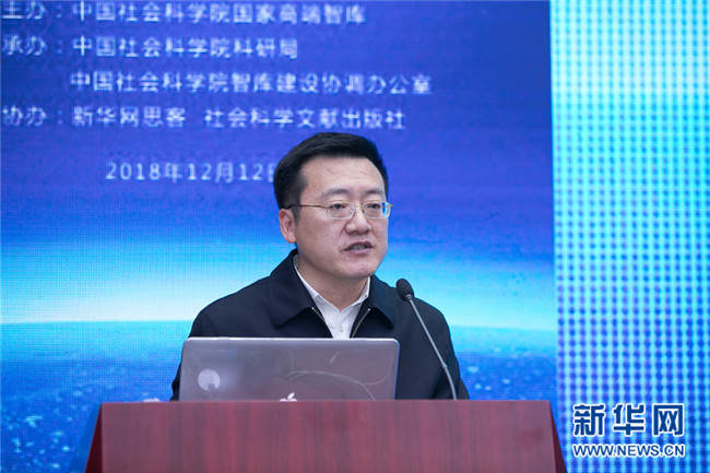 中國(guó)社會(huì)科學(xué)院科研局局長(zhǎng)、院智庫建設(shè)協(xié)調(diào)辦公室主任馬援致辭。肖斌 攝