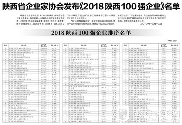 本次大會發(fā)布的2018陜西百強(qiáng)企業(yè),涉及陜西省能源化工、裝備制造、服務(wù)業(yè)和消費(fèi)品等多個(gè)行業(yè)。陜西延長石油(集團(tuán))有限責(zé)任公司、陜西煤業(yè)化工集團(tuán)有限責(zé)任公司、陜西有色金屬控股集團(tuán)有限責(zé)任公司、東嶺集團(tuán)位列2018陜西百強(qiáng)企業(yè)前四位,并位列陜西省民營企業(yè)第一名。