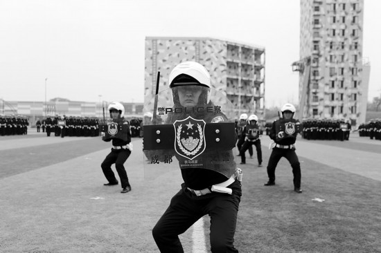 成都交警“鐵馬戰(zhàn)盾”首次亮相