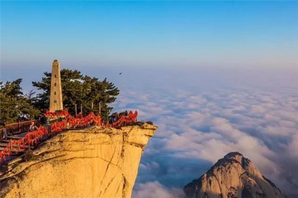 南峰海拔2154.9米,是華山最高主峰,也是五岳最高峰,古人尊稱它是“華山元首”。登上南峰絕頂,頓感天近咫尺,星斗可摘。舉目環(huán)視,但見群山起伏,蒼蒼莽莽,黃河渭水如絲如縷,漠漠平原如帛如綿,盡收眼底,使人真正領略華山高峻雄偉的博大氣勢,享受如臨天界,如履浮云的神奇情趣。