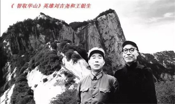 1949年6月,西北野戰(zhàn)軍解放了西安,當(dāng)華陰縣城解放時,偽保六旅旅長韓子佩,帶一個警衛(wèi)營和旅直屬隊300余人逃到了華山上,企圖依靠華山天險繼續(xù)同胡宗南聯(lián)系等待時機,卷土重來。6月14日,中國人民解放軍大荔軍分區(qū)路東縱隊偵察參謀劉吉堯和六名偵察兵前往華山偵察道路。在當(dāng)?shù)叵驅(qū)蹉y生的帶領(lǐng)下,劉吉堯星夜帶領(lǐng)楊建東、路德才、孟俊甫、楊黨成、崔朝山、張自發(fā)等8勇士,到達猩猩溝盡頭。數(shù)百丈危崖聳立在面前,王銀生指著一個十丈高的黑洞說:“這是天井,我們就要從這里上去。”說著就把背著的大繩套在腰間,借著兩腿叉開的撐力,徐徐向上。10分鐘后,洞里放下來一根繩頭,7位偵察員依次被吊上天井。經(jīng)過一段險坡后,前面又是一個高約15米的陡立石壑。王銀生施展他在山里采藥、打柴的本領(lǐng),借著一條石縫登上去,把繩子拴在一個木樁上,將其他同志吊上來。又向北行約1里便是“老虎口”,這是懸在絕壁上的一個崖歙,崖歙的上面伸出一個飛巖,下面是傾斜的滑坡,坡下便是一眼望不到底的萬丈深淵。這時候只要雙腿發(fā)軟,就會滑下去,尸骨無存。戰(zhàn)士們只能借著腰肢和肩膀的上下?lián)瘟?,好像一個木楔子似的慢慢通過。在漆黑的夜里,他們又下滑輾轉(zhuǎn)500多米,才到達北峰腳下。