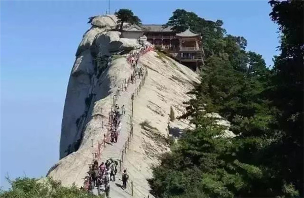 華山之險的表現(xiàn)之一,在于登山之路蜿蜒曲折,到處都是懸崖絕壁,有“自古華山一條路”之說。