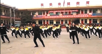 張鵬飛:開始時(shí),也就二三十個(gè)人,現(xiàn)在全校700多師生一起跳“鬼步舞”,由我領(lǐng)隊(duì)。學(xué)生們都挺喜歡的。孩子們因?yàn)槎枷矚g跳舞,想著怎么把這個(gè)舞跳好,各個(gè)班級(jí)也在“暗中較勁”,比拼哪個(gè)班跳得好。