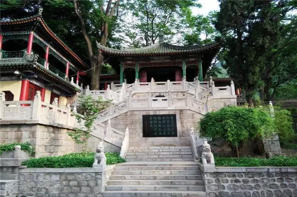 玉泉院的整體布局順應(yīng)了中國(guó)傳統(tǒng)的園林建筑布局風(fēng)格,“對(duì)稱美”的審美觀體現(xiàn)得十分鮮明,整體格局十分嚴(yán)道。正門居中,兩側(cè)回廊,西北東北兩角各一亭。西院面東有七真殿,東院面西就有華岳圣母殿。西有山蘇亭、希夷睡洞,東有運(yùn)氣亭、呂祖洞。正殿直對(duì)大門,用墻分割為一單體院落,拱門與前院相通、從視覺心理上給人以靜止、穩(wěn)重和居塵出塵之感,體現(xiàn)了道家中規(guī)中矩的“無(wú)為”思想和追求完善的審美情趣。