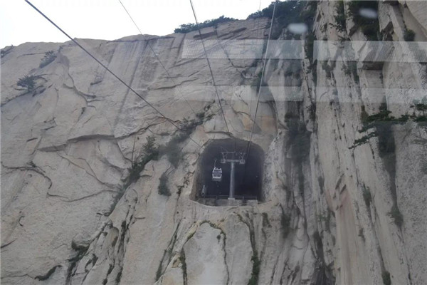 現(xiàn)在爬華山可不是“自古華山一條道”了,我們選擇坐西峰索道纜車,凌空飛渡千山萬(wàn)壑。說是千山萬(wàn)壑,其實(shí)華山是由一塊完整碩大的花崗巖石體構(gòu)成的?!渡胶=?jīng)》記載:“太華之山,削成而四方,其高五千仞,其廣十里。”真的很難想像,這么連綿起伏、巨大的山體,其實(shí)是一個(gè)群峰競(jìng)秀的整體。華山,就是這么神奇!