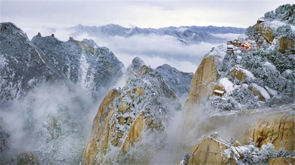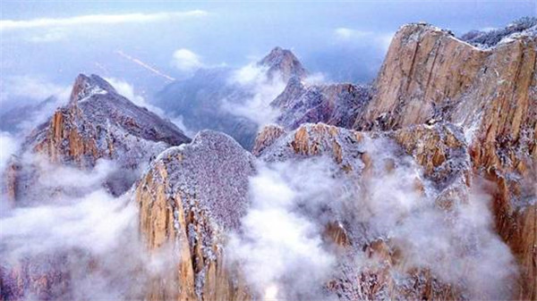 一場大雪將西岳華山變成白雪皚皚的世界,白雪與蒼翠的華山奇松、靈動的云海交相輝映,如夢如幻;滿山遍野玉樹瓊花,樹枝上通體的霧凇晶瑩剔透,繪就冬日畫境,美不勝收,游人如置身人間仙境。