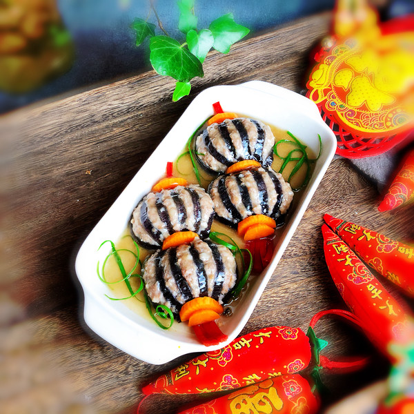 “今天買了一個大茄子,釀入豬肉餡,樣子像極了燈籠,如果你想顏色更深一點,那就在調肉餡的時候加點老抽甚至加點紅曲粉,最后調澆汁的時候可以調成酸甜的番茄汁味,那就看起來更加的紅紅火火了。不過我還是比較喜歡這種小清新的風格。這道菜一上桌,能把大魚大肉都比下去,好看好吃還喜慶。”