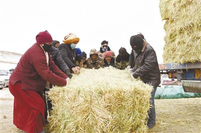 2月25日,玉樹藏族自治州玉樹市上拉秀鄉(xiāng)日瑪村,寒風(fēng)瑟瑟,村民內(nèi)心卻是無(wú)比溫暖,黨委政府下?lián)艿娘暡萘弦慌慌乩\(yùn)到了日瑪村,村民自發(fā)組織卸載搬運(yùn)飼草料,分到飼草料的牧民,用自家面包車?yán)\(yùn)飼料,臉上掛滿了笑容。