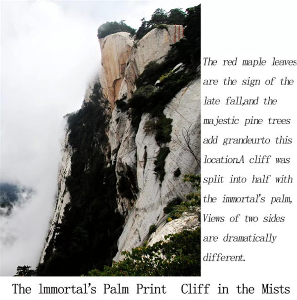 我獨自一人出發(fā),一段垂直的石隙,鐵條插在巖石之中,道路向下延伸,風刮得很大,我雙手麻木,死死地抓住鐵鏈,慢慢向下挪動,腳下是一千米深的峽谷,這是一個恐懼與光榮交織的時刻。我走在棧道上,左右上下地欣賞著風景,周圍大山巨大而孤獨,我感覺自己就像是一個塵埃,真的太渺小了。冰屑落到頭頂上,幸虧不是石塊。我聽到一群中國游客笑著從石隙中下來,我停下來照了幾張相,要回去必須原路返回,這同樣不容易,我很感謝地歸還了手套,繼續(xù)向其他山峰攀登。由于有安全保護措施,因此我不認為華山是“世界上最危險的道路”。