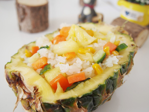主料:菠蘿100克  胡蘿卜50克  黃瓜50克  甜玉米粒50克  大米200克  清水180克