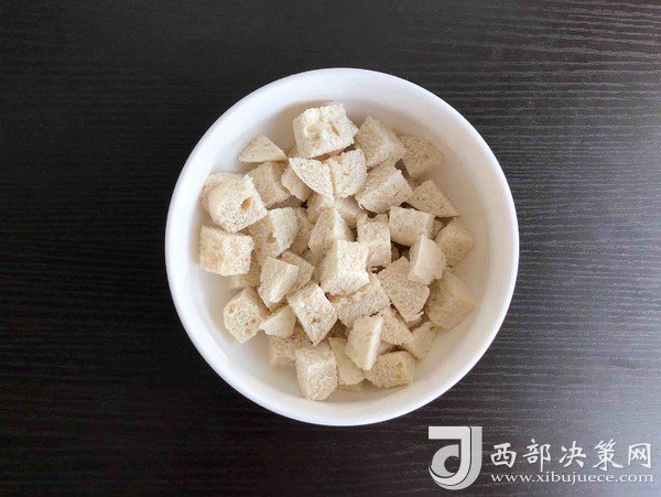 1.饅頭去皮切丁放入碗中