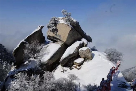 五云峰在蒼龍嶺上,金鎖關下,是一座南北走向的峰頭。它的西面下臨深壑,崖壁陡峭。東面較平緩,是攀登東、西、南三峰的必經(jīng)之地。峰上攀山道路千折百回,別具一格,路兩邊青松成林,風景秀麗。每當深秋季節(jié),松翠楓赤,山花耀目,在陽光照射下,猶如五色彩云,故峰因此而得名,又因峰位置居東、西、南、北四座主峰中央,古時也曾稱為中峰。