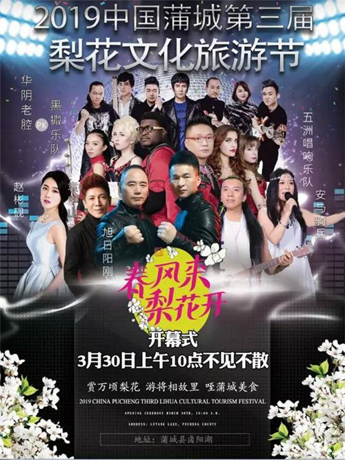 內(nèi)容:“春風來 梨花開”2019中國蒲城梨花文化旅游節(jié)開幕式盛大文藝演出與您相約,陣容強大、星光熠熠唱響蒲城大地。