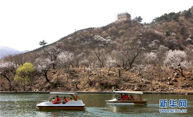 4月7日,游客在北京懷柔水長城旅游景區(qū)踏青賞花。清明時節(jié),人們外出旅游,踏青賞花,感受春天的美好。 新華社發(fā)(卜向東 攝)