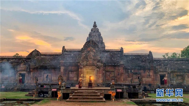 這是4月5日拍攝的泰國武里南府低城寺。 一年一度的“登帕儂隆山節(jié)”在泰國東北部毗鄰柬埔寨的武里南府帕儂隆山舉辦。當?shù)厝艘怨叛b巡游展示獨特的傳統(tǒng)文化,希望能吸引更多外國游客、促進當?shù)芈糜螛I(yè)發(fā)展。 新華社記者 張可任 攝