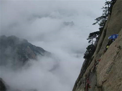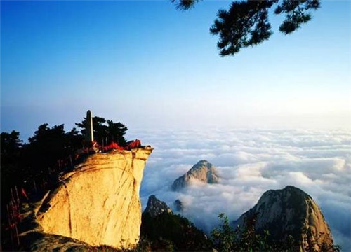 登臨華山之巔,“只有天在上,更無山與齊。舉頭紅日近,回首白云低。”站在華山之上,風(fēng)云際會(huì),秦川茫茫,藍(lán)天如洗。李白有詩稱贊“西岳嶸嶸何壯哉,黃河如絲天際來。”