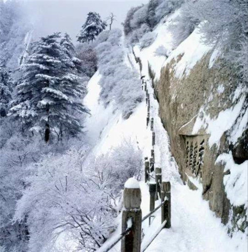 而到了冬季,白雪皚皚,雪淞峭壁,給人以仙境之感。所以喜歡旅游的朋友至少應(yīng)該來四次華山,感悟大自然的鬼斧神工,領(lǐng)略西岳華山四季之美。