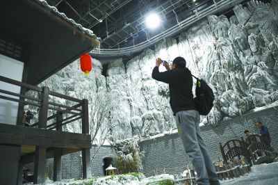 除了眾多親子游客,不少年輕人也特地前來。中影基地6號(hào)棚的江南水鄉(xiāng)拍攝小景跟前,聚集了許多年輕人圍觀一對(duì)青年體驗(yàn)拍攝《大話西游》中的經(jīng)典場(chǎng)景。全副武裝扮演至尊寶的是來自北京吉利學(xué)院的學(xué)生張江。“曾經(jīng),有一份真誠(chéng)的愛情放在我面前,我沒有珍惜,等到我失去的時(shí)候才后悔莫及……”當(dāng)背出了至尊寶的經(jīng)典臺(tái)詞時(shí),張江依然覺得“很尬”,難以入戲。導(dǎo)演趕緊上來給他說戲,“這時(shí)候劍距離你的喉嚨只有0.01公分,你要仰起頭……”這當(dāng)口,飾演紫霞仙子的女同學(xué)已經(jīng)拿不住劍,手腕松了下來。一個(gè)小時(shí)過去了,這一條還是沒能過,只好休息一會(huì)兒。“人生第一次嘛,體驗(yàn)體驗(yàn)。”張江說。