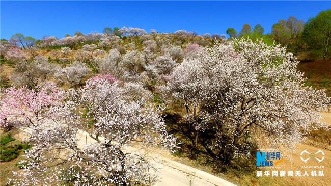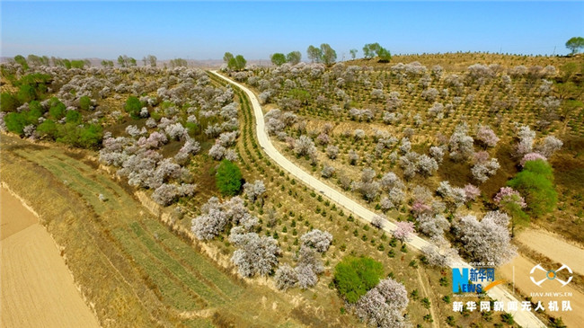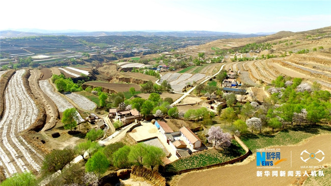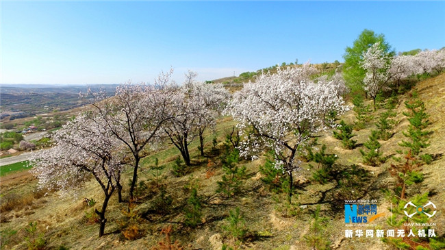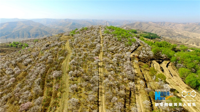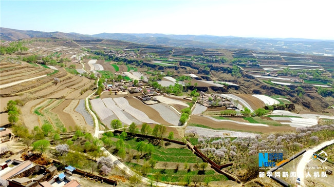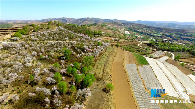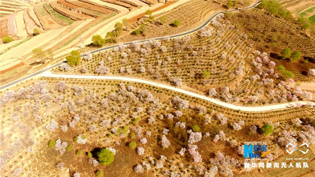 原標(biāo)題:【飛“閱”中國(guó)】甘肅定西:黃土塬上別樣景 千樹(shù)杏花笑春風(fēng)