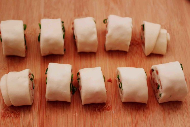 13.從面皮的一斷開(kāi)始卷起來(lái),一直卷到底。