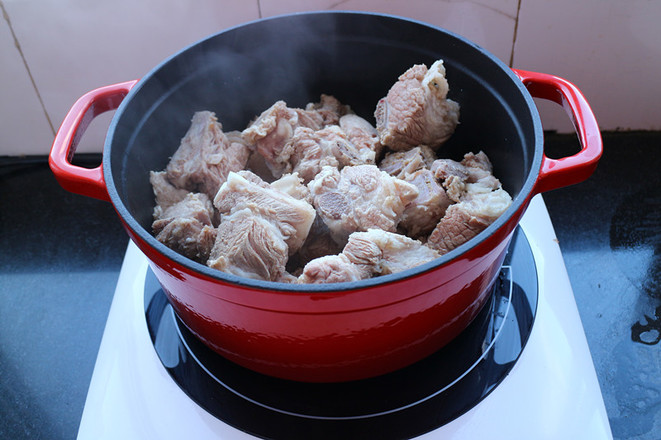 2. 排骨中途放進(jìn)去,以防提前燉的太爛糊了。